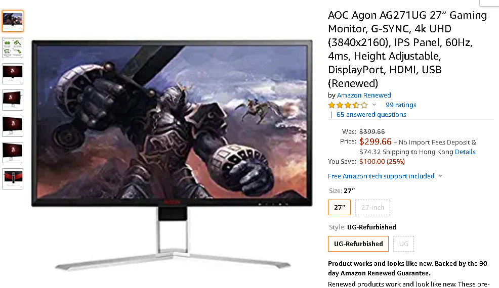 | ✔️ | [AMAZON] $299.66 AOC Agon AG271UG 27” Gaming Monitor, G-SYNC, 4k UHD (3840x2160), IPS Panel 🔗 🖼️ | Percy | 486 | 1/0 | 19.12.27 13:55 |