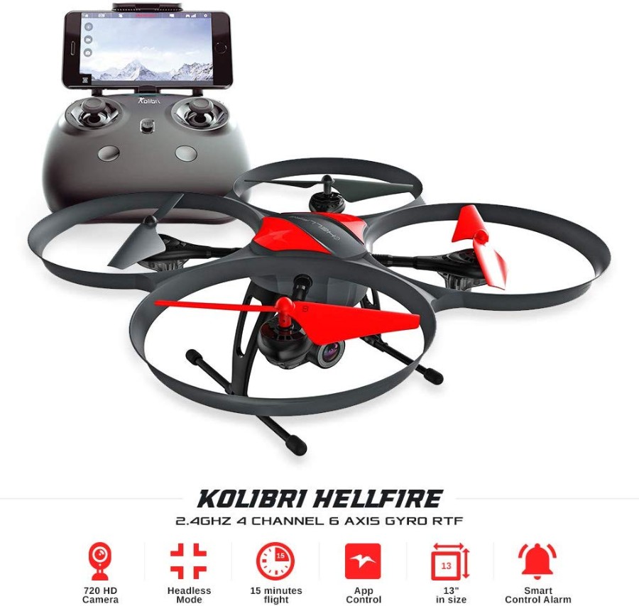 Kolibri Hellfire - Best Quadcopter Drone Wide-Angle Camera with Live Video Feed FPV 720P HD Headless Mode 2.4GHz 4 Channel 6 Axis Gyro RTF with Altitude Hold Function, Great for Beginners.