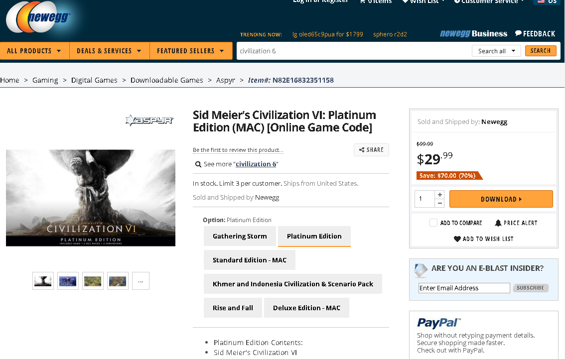 | ✔️ | [NEWEGG] $29.99 Sid Meier"s Civilization VI: Platinum Edition (MAC) [Online Game Code] 🔗 🖼️ | Fauna | 564 | 1/0 | 20.01.04 13:13 |