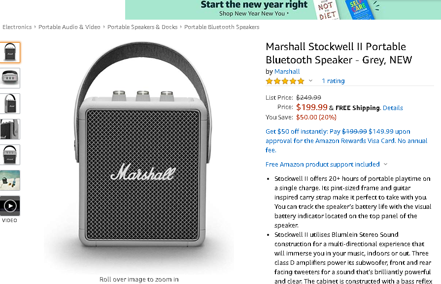 Marshall Stockwell II Portable Bluetooth Speaker - Grey, NEW Blue Fairy 20.01.07 14:00 (103.4.xxx.80)