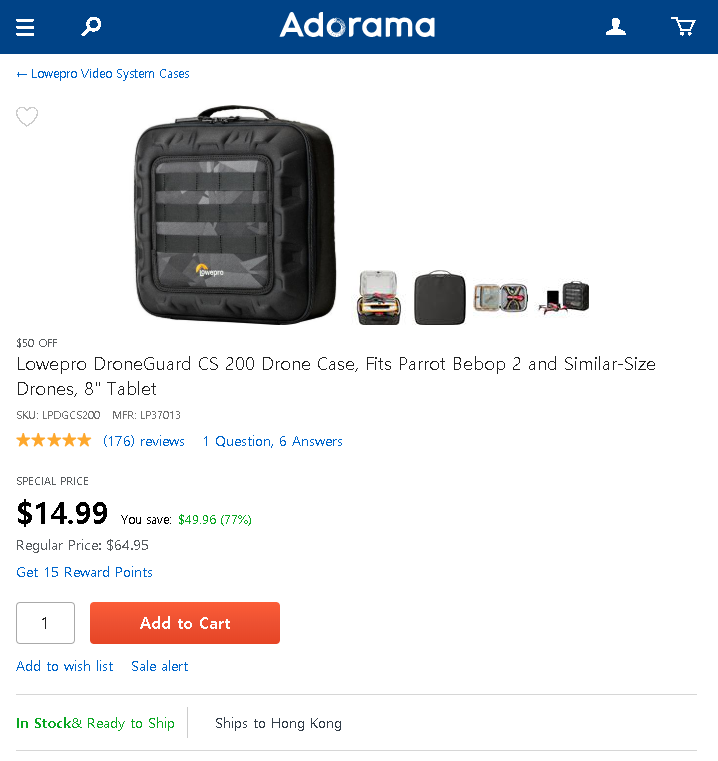 For limited time only, save 77% on the Lowepro DroneGuard dropping from $64.95 to $14.99 when you buy this item at Adorama.com and Shipping is free!