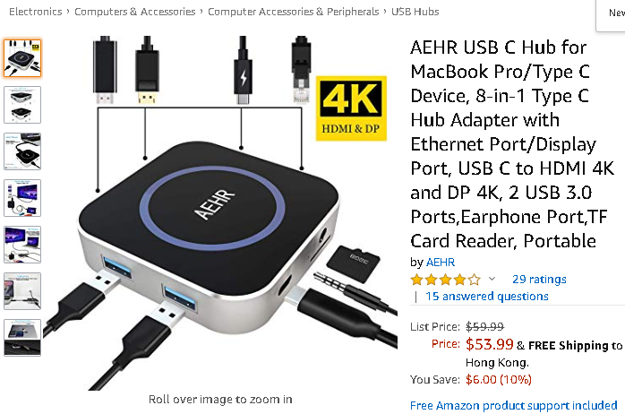 [AMAZON] $53.99 AEHR USB C Hub for MacBook Pro/Type C Device, 8-in-1 Type C Hub Adapter with Ethernet Port/Display Port, USB C to HDMI 4K and DP 4K, 2 USB 3.0 Ports,Earphone Port,TF Card Reader, Portable Anastasia 20.01.12 13:11 (119.28.xxx.246)