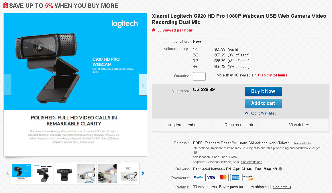 | ✔️ | [EBAY] $89.99 Xiaomi Logitech C920 HD Pro 1080P Webcam USB Web Camera Video Recording Dual Mic 🔗 🖼️ | Those | 1,014 | 1/0 | 20.04.07 07:00 |